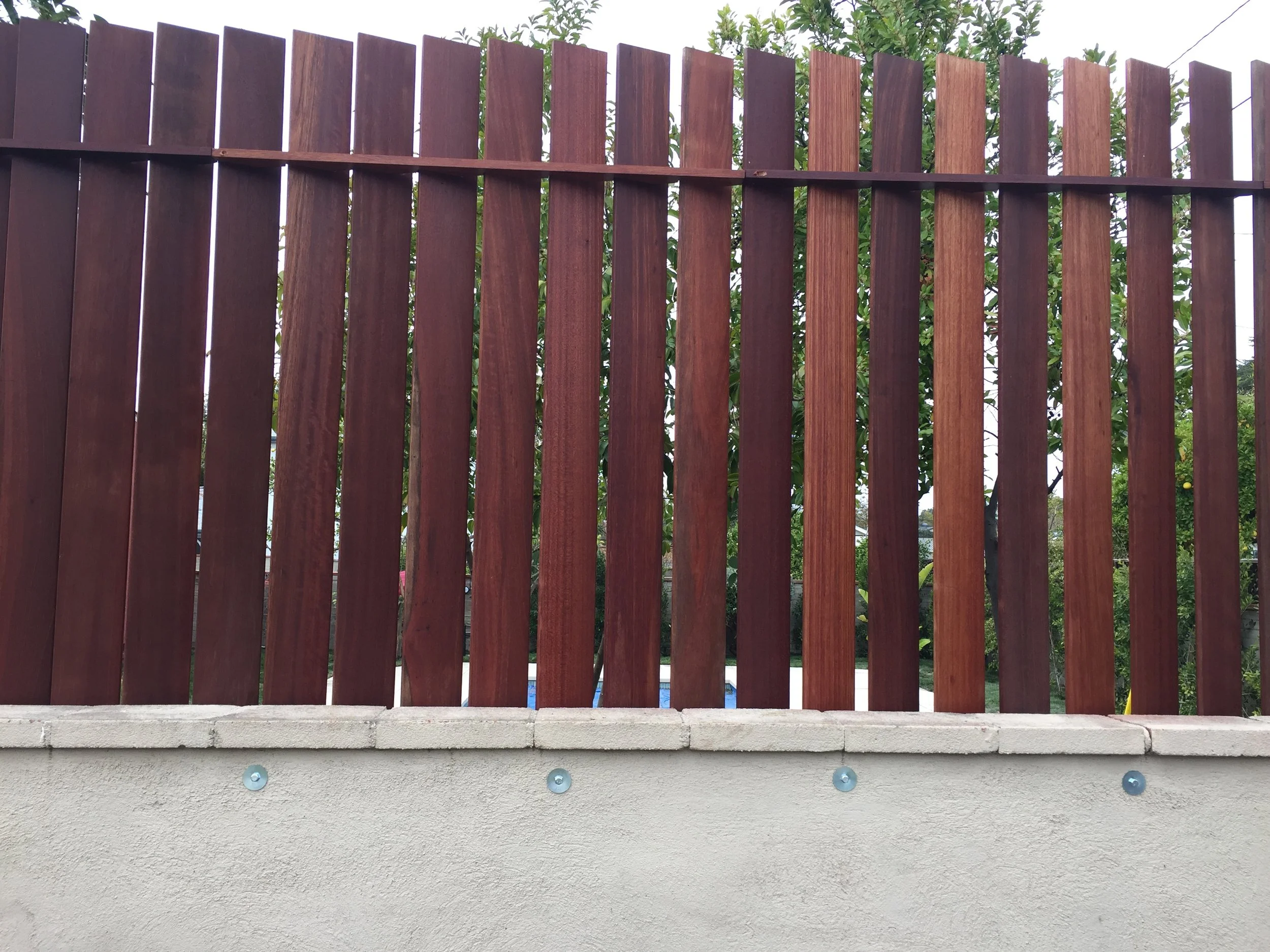 Privacy Screen ProcessesDesignPatterning and RoutingInstallation MaterialsRed Mangaris (wood)Stainless Steel Fasteners ClientLeah Brownstein, DesignerNorth Hollywood, CA2022